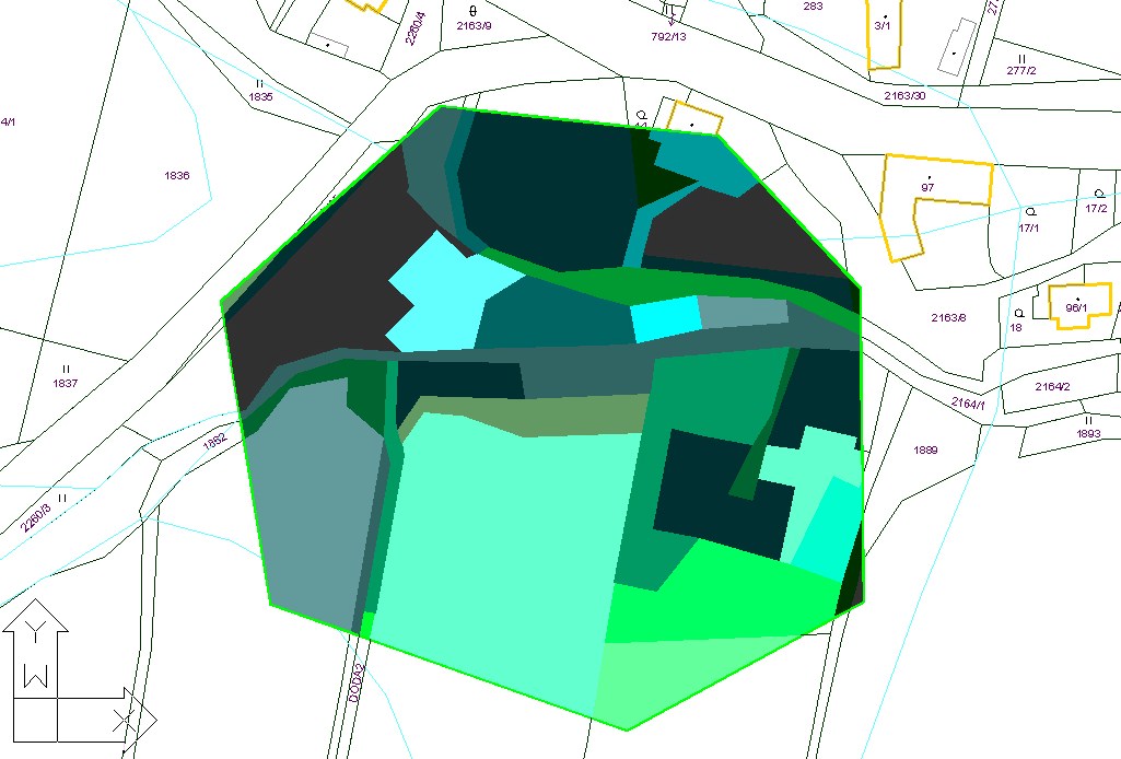 . . . . . - (kreslení hranice požárně nebezpečného prostoru, výpis značek)